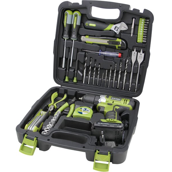 Extol 422800 akkumulátoros fúró-csavarozó (1 x 1.3 Ah Li-ion akkuval, kofferben) + 46 db-os szerszám készlet