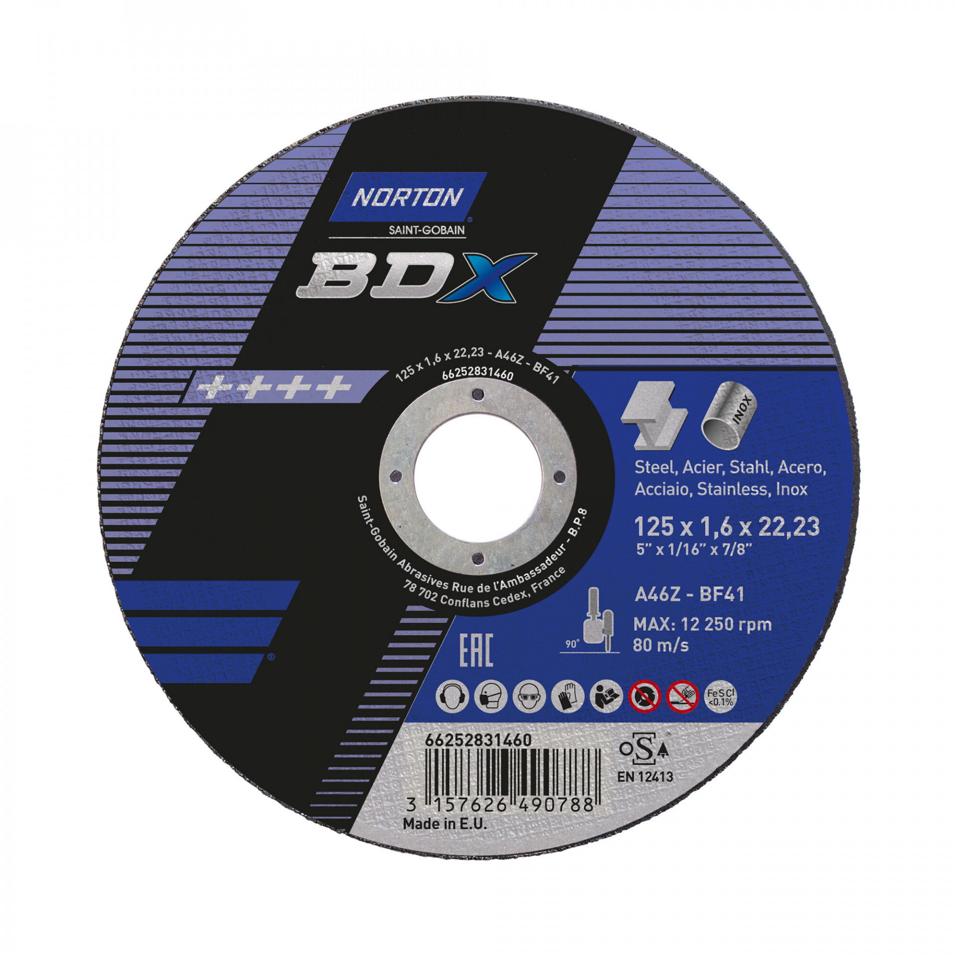 Norton BDX fém-inox vágókorong 125x1,6x22,23 A46T, 25 db/csomag