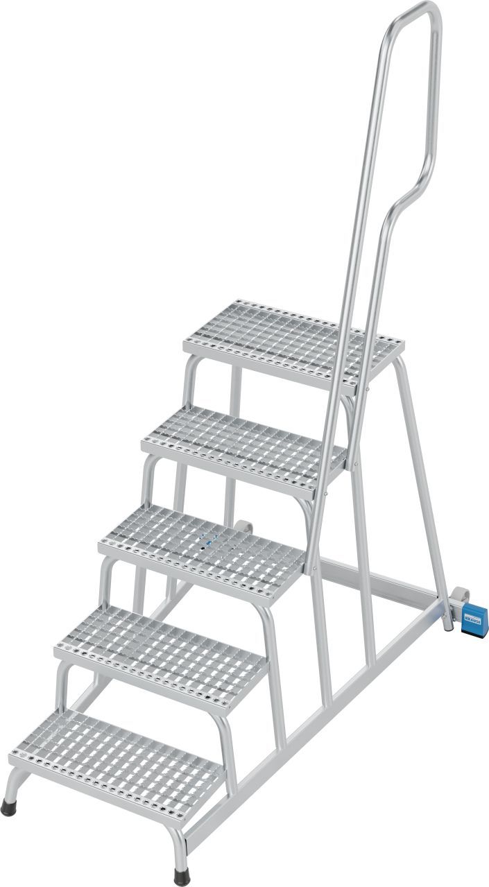 Könnyű, mobil alumínium szerelődobogó igényes ipari alkalmazásokhoz csúszásgátló R13 lépcsőfokokkal és kapaszkodóval. A mély, csúszásmentes rácsos lépcsőfokokkal és a nagyméretű dobogóval ideális minden nedves és olajos munkakörnyezetben.
